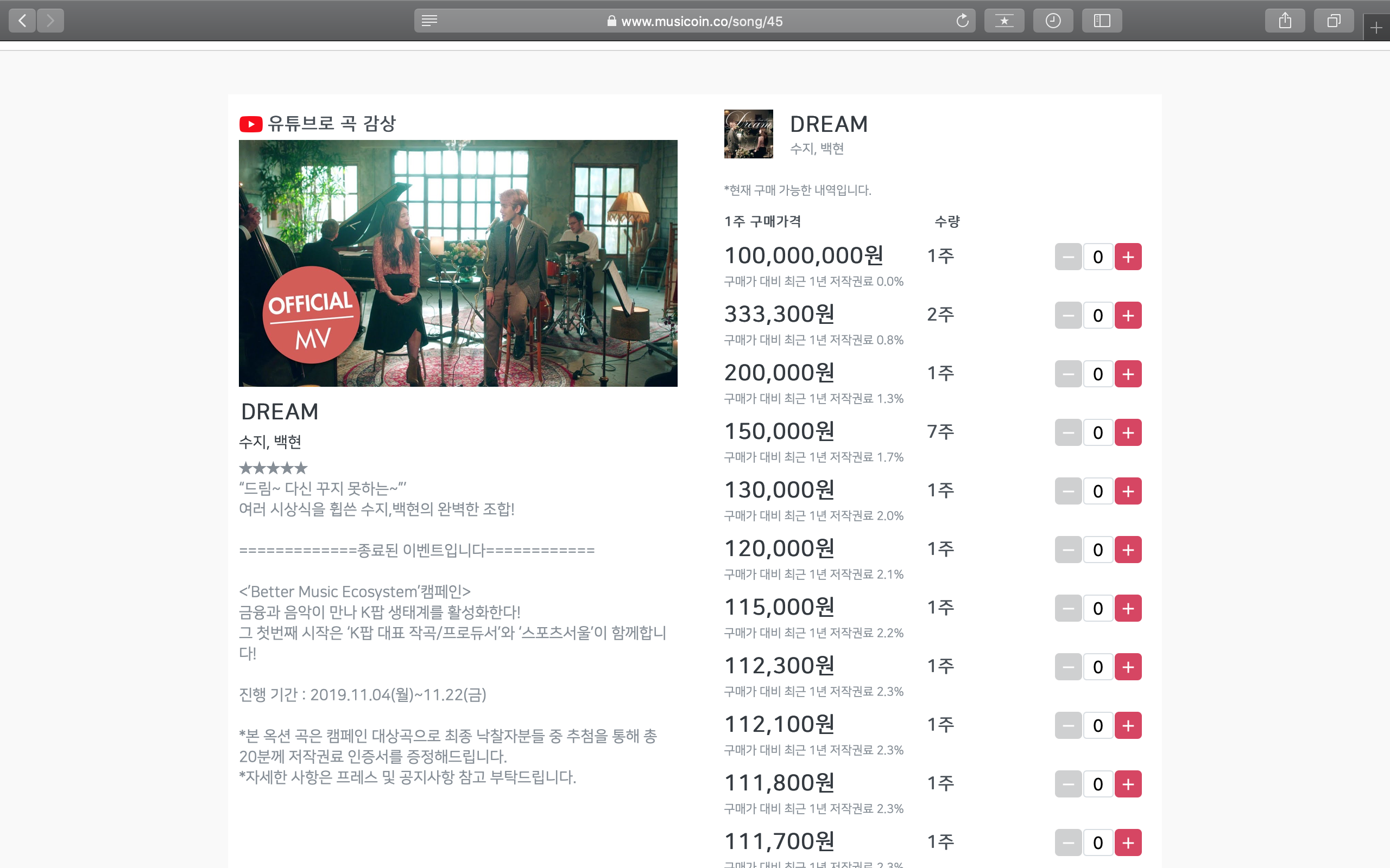 뮤지코인은 음원 저작권의 일부 권리를 얻은 후 해당 음원의 수익을 일정부분 지급받는 것입니다.