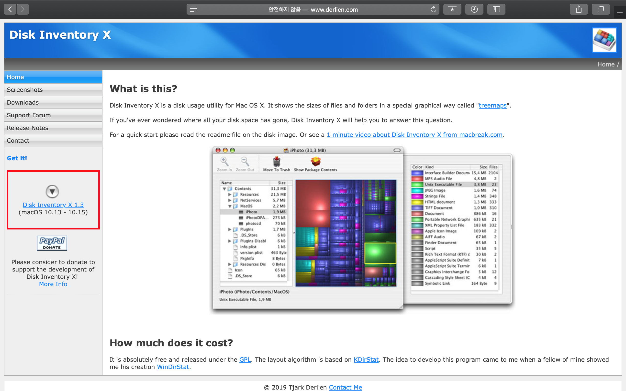 여기에서 Disk Inventory X 프로그램을 실행하면 됩니다.
