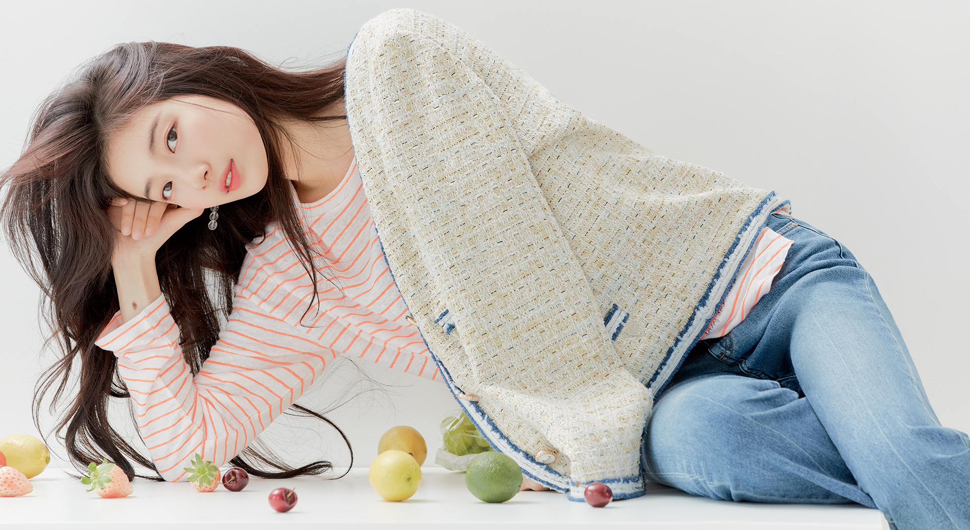 이번에 공개된 화보에서도 다채로운 매력을 드러내며 게스의 와이드 진 라인을 완벽히 소화하는 모습을 보여줬습니다.