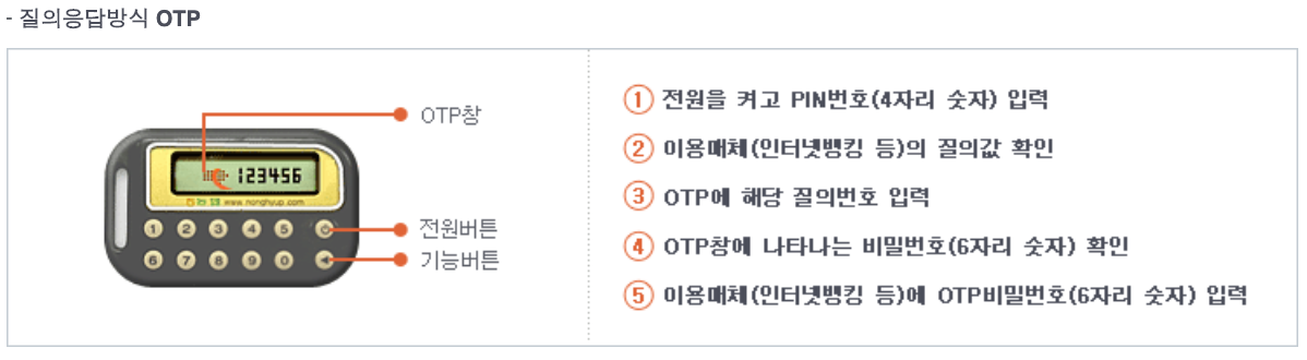 먼저 질의응답방식 OTP 카드는 다음과 같습니다.