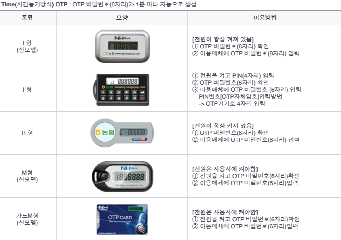 위에 보시는 것처럼 다양한 OTP 카드가 존재하는데요.