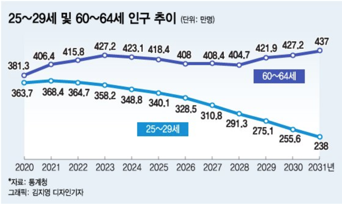 하지만 고용연장에 대한 이야기가 나오는 이유는 다시 생산 인구의 급감이 선명하게 보이기 때문입니다.