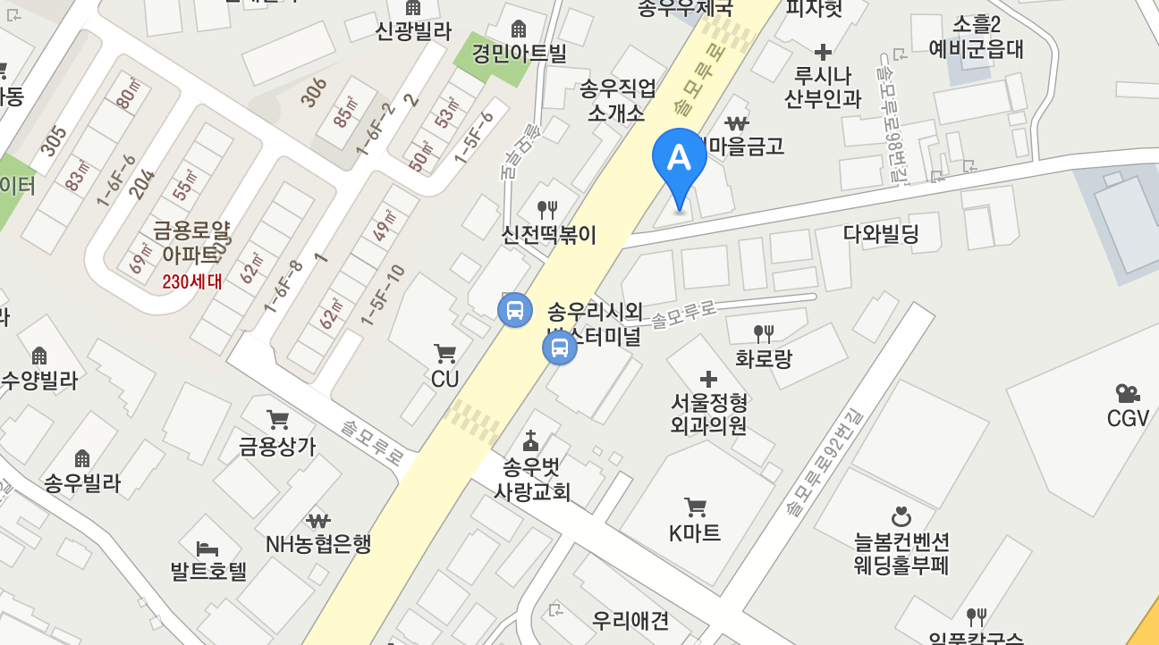 위치는 위의 사진에서 보실 수 있듯 송우리 시외 버스터미널 근처에 있는데요.