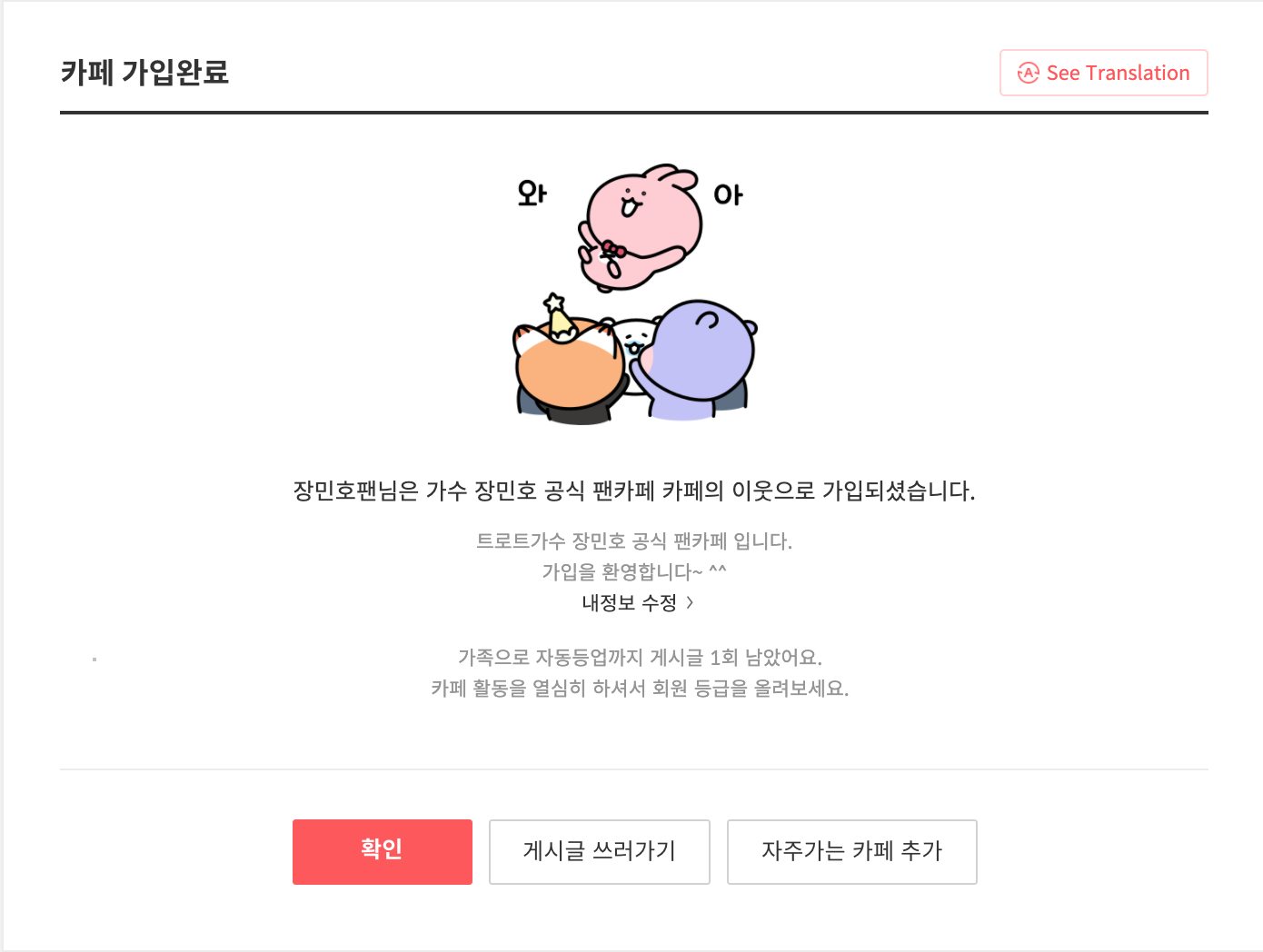 이제부터 글을 쓰기도 하고 읽기도 하시면서 팬카페 활동을 하시면 됩니다. :-)