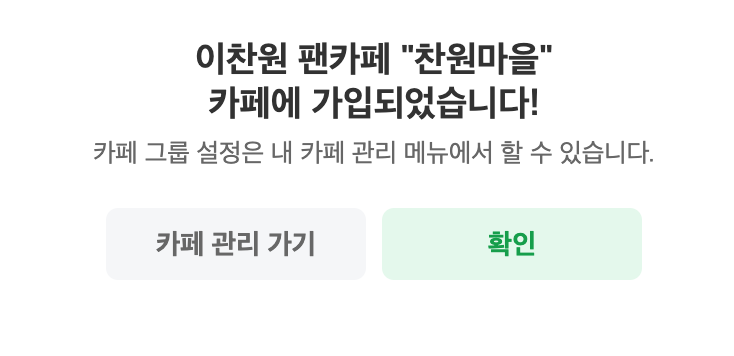 앞으로 가수 이찬원의 활동을 보시고 같이 이찬원의 팬이 된 분들과 소통하실 수 있게 카페에 가입하시는 것도 좋을 것 같아요.