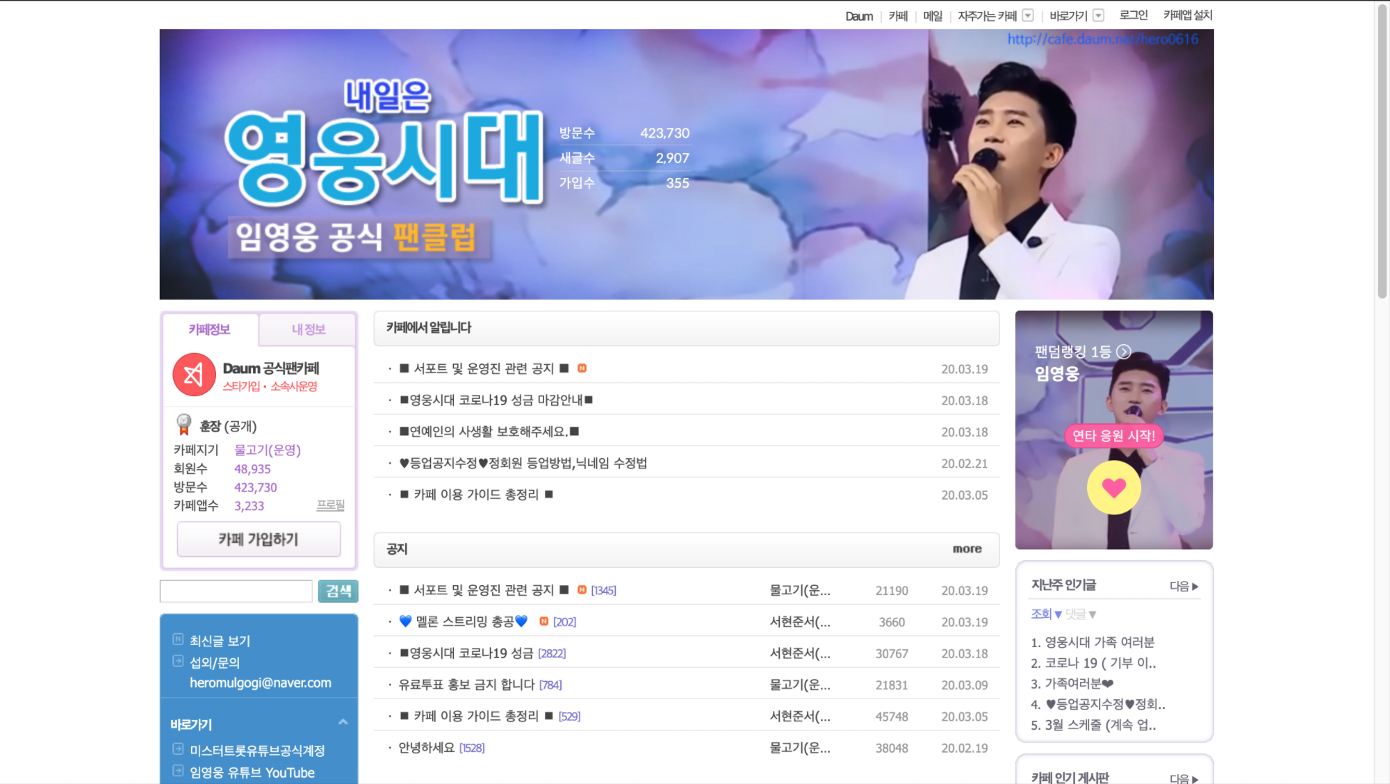 임영웅 팬카페의 링크는 다음과 같습니다.