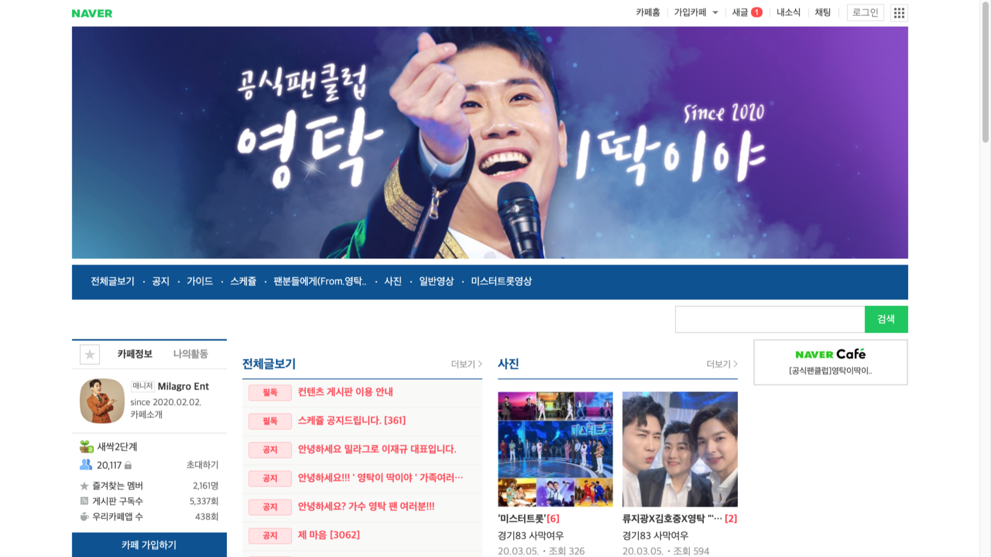 [공식팬클럽]영탁이딱이야 : 네이버 카페