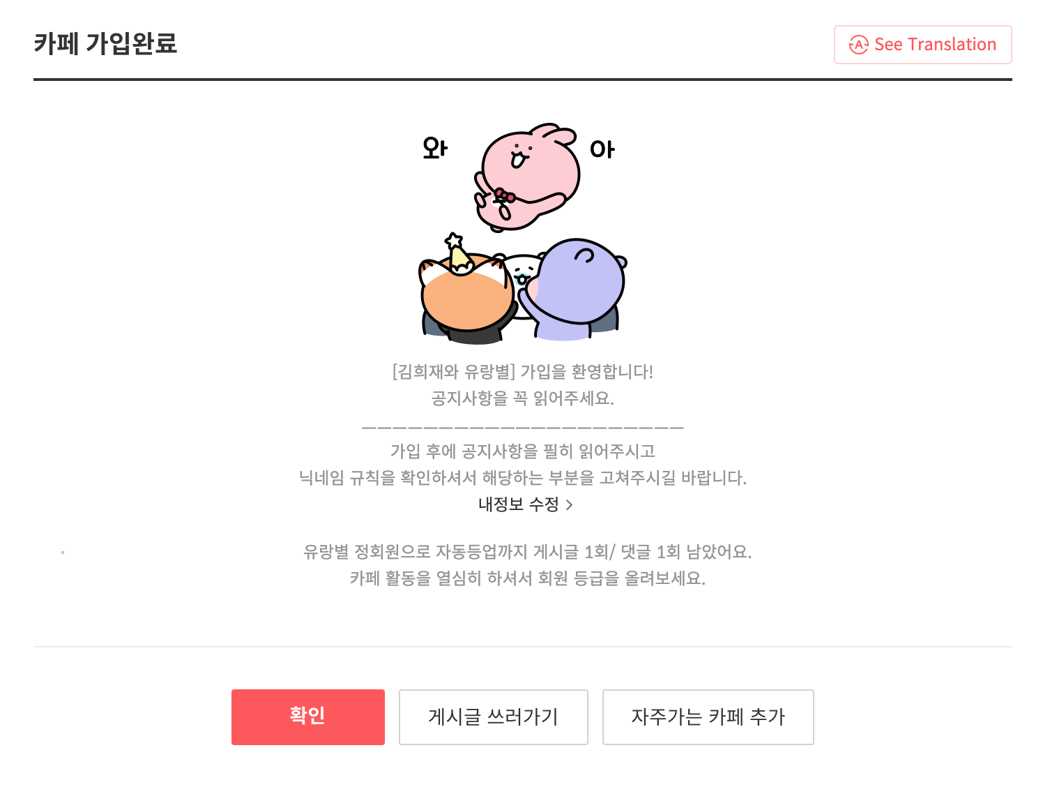 모든 절차가 끝나면 위와 같이 가입 완료 알림창이 뜨게 됩니다.