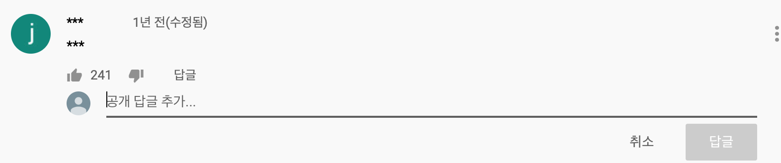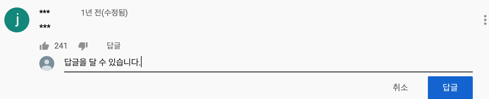 아래와 같이 글자가 써지고 우측 하단의 파란색으로 표시된 댓글 버튼을 누르시면 정상적으로 글이 해당 영상의 댓글로 달리게 됩니다.