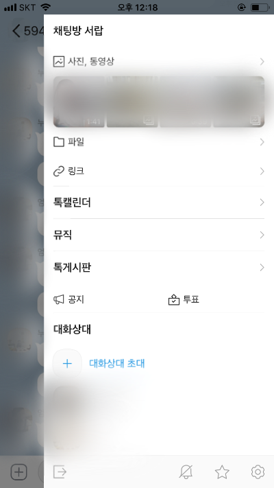 대화방에서 더보기 탭을 연 후 우측 하단의 톱니바퀴 버튼을 누릅니다.