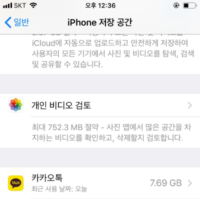 저는 저장공간에서 무려 7.69GB의 용량을 차지하고 있네요!