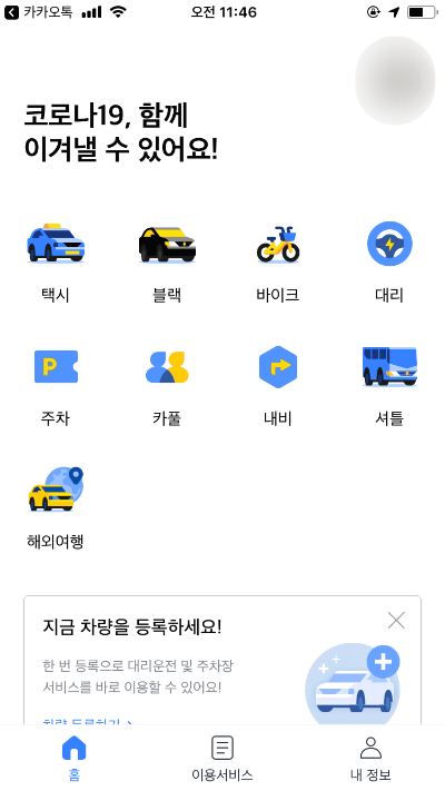먼저 카카오택시 어플을 실행합니다.