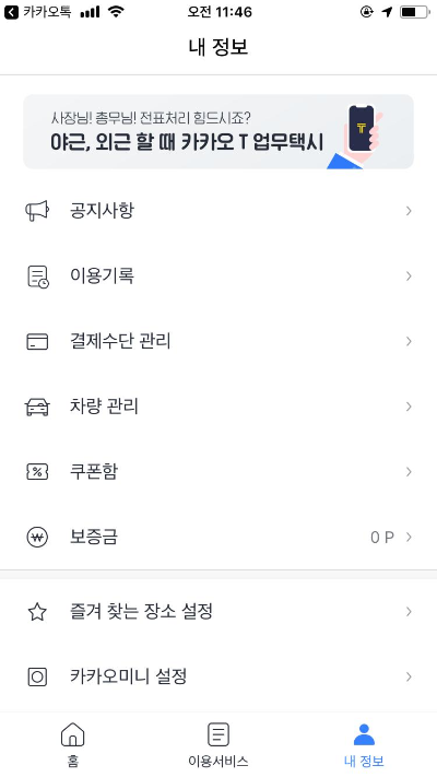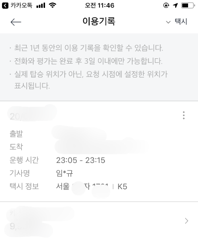 기본적으로 카카오택스를 이용하게 되면 해당 어플에 운전자 정보가 기록되어 있습니다.