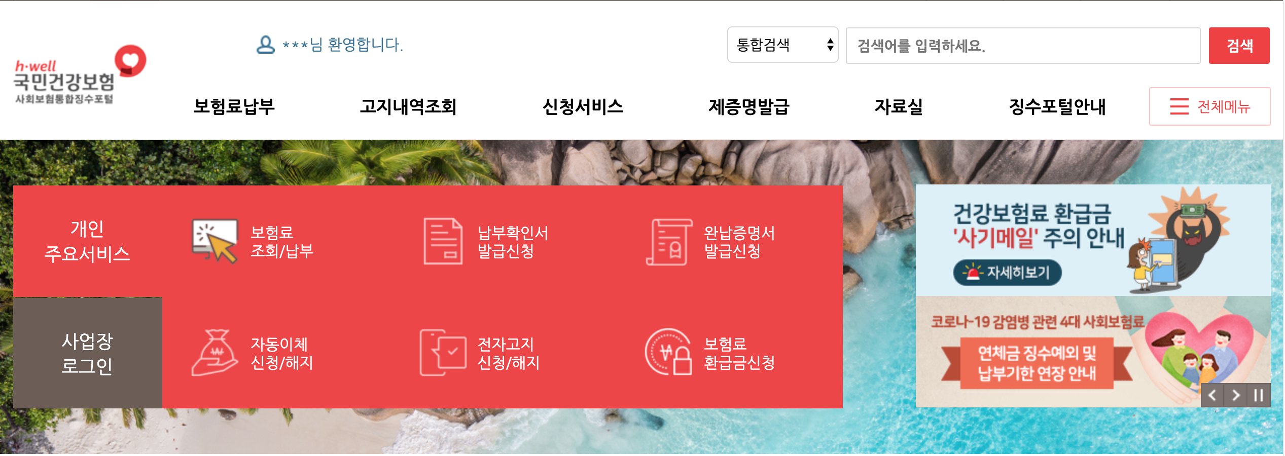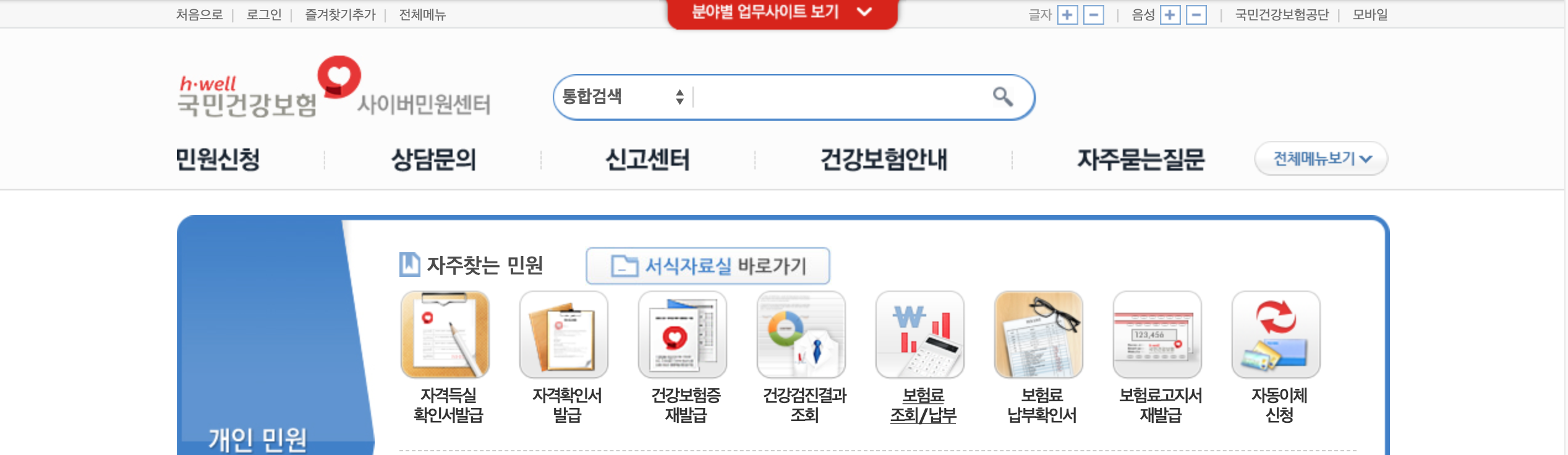 첫번째, 국민건강보험에 접속합니다.