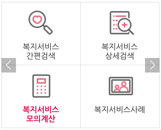 두번째, 우측에 있는 '복지서비스 모의계산'을 클릭합니다.