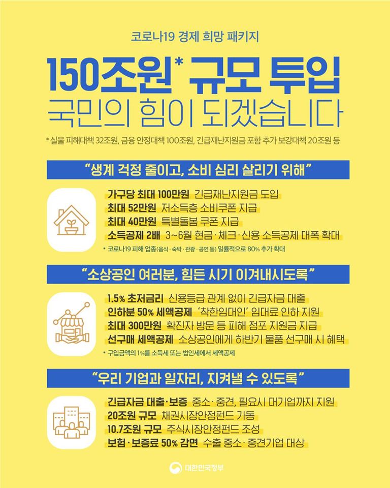 코로나19로 인해 많은 분들이 힘들어하고 있는 이 시기에 정부에서 여러 대책을 내놨습니다.