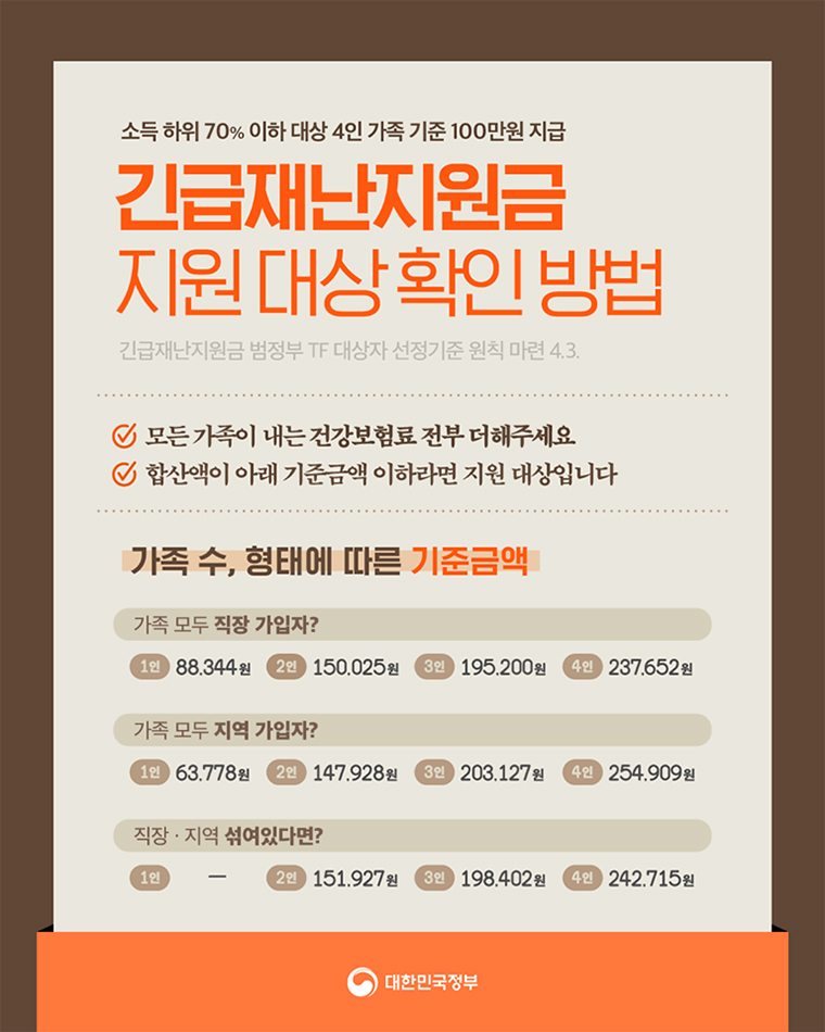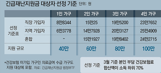 ※ 정부에서 발표한 긴급재난지원금 선정 기준.