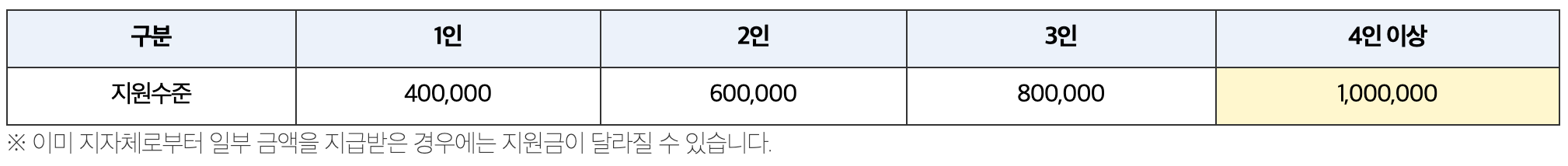 가구원 수에 대한 정부 긴급 재난 지원금은 위와 같습니다.