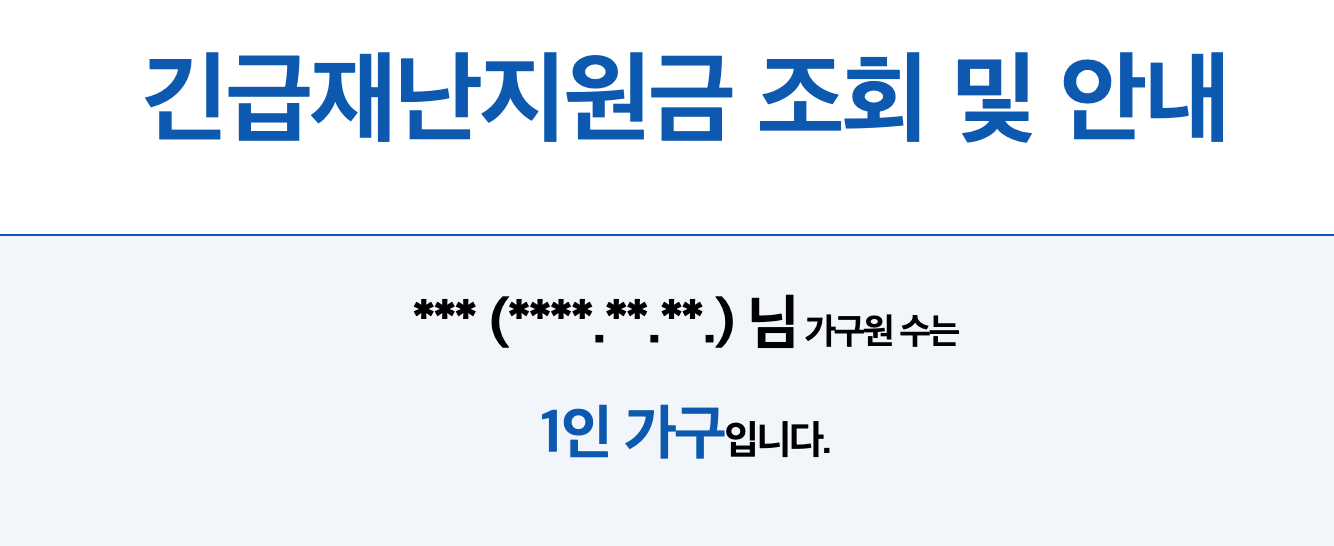 조회 후 자신의 가구원 수를 확인할 수 있으며 이에 따른 지급액을 확인하시면 됩니다.