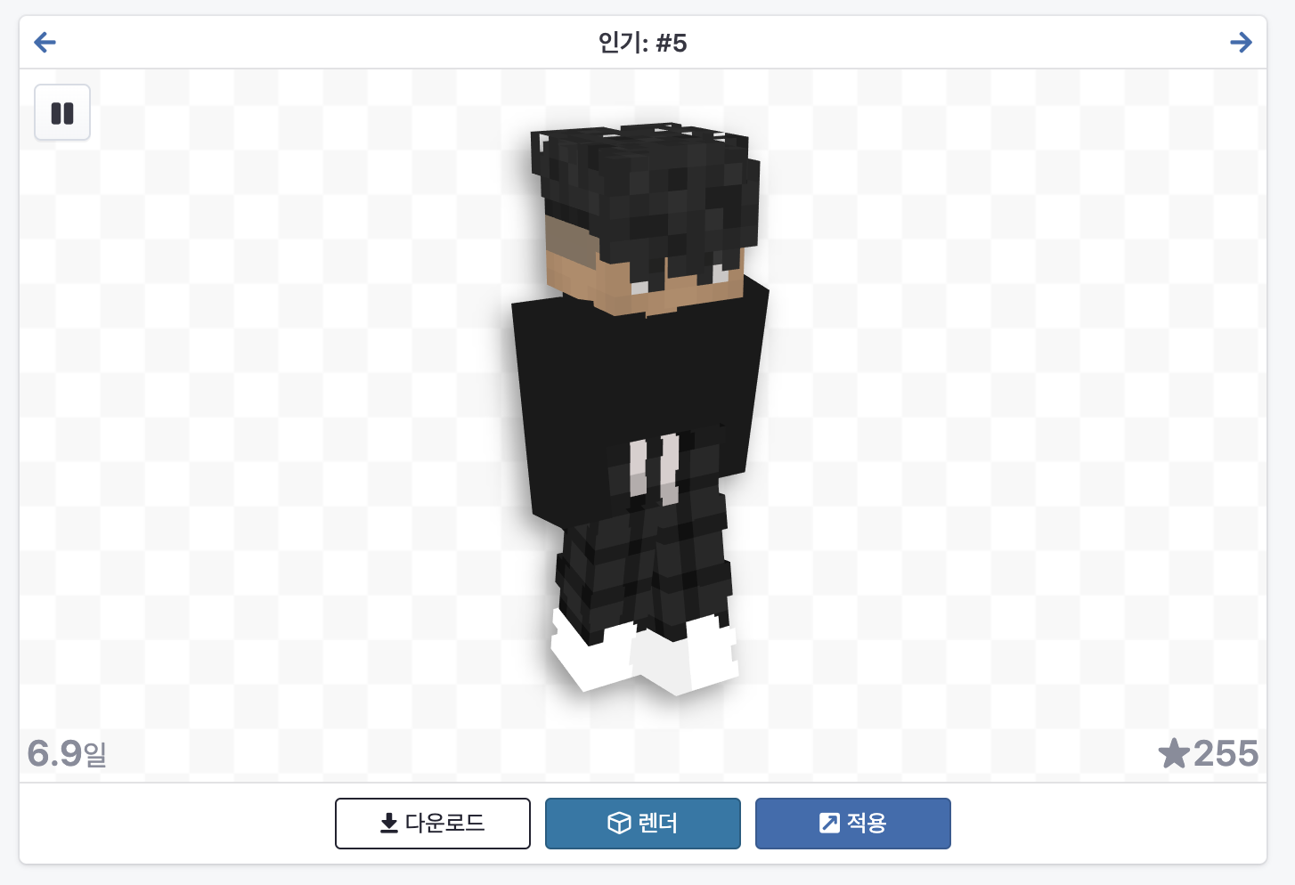 이 사이트에서는 스킨에 대한 기본적인 정보로 뷰 수와 다운로드 수를 제공합니다.