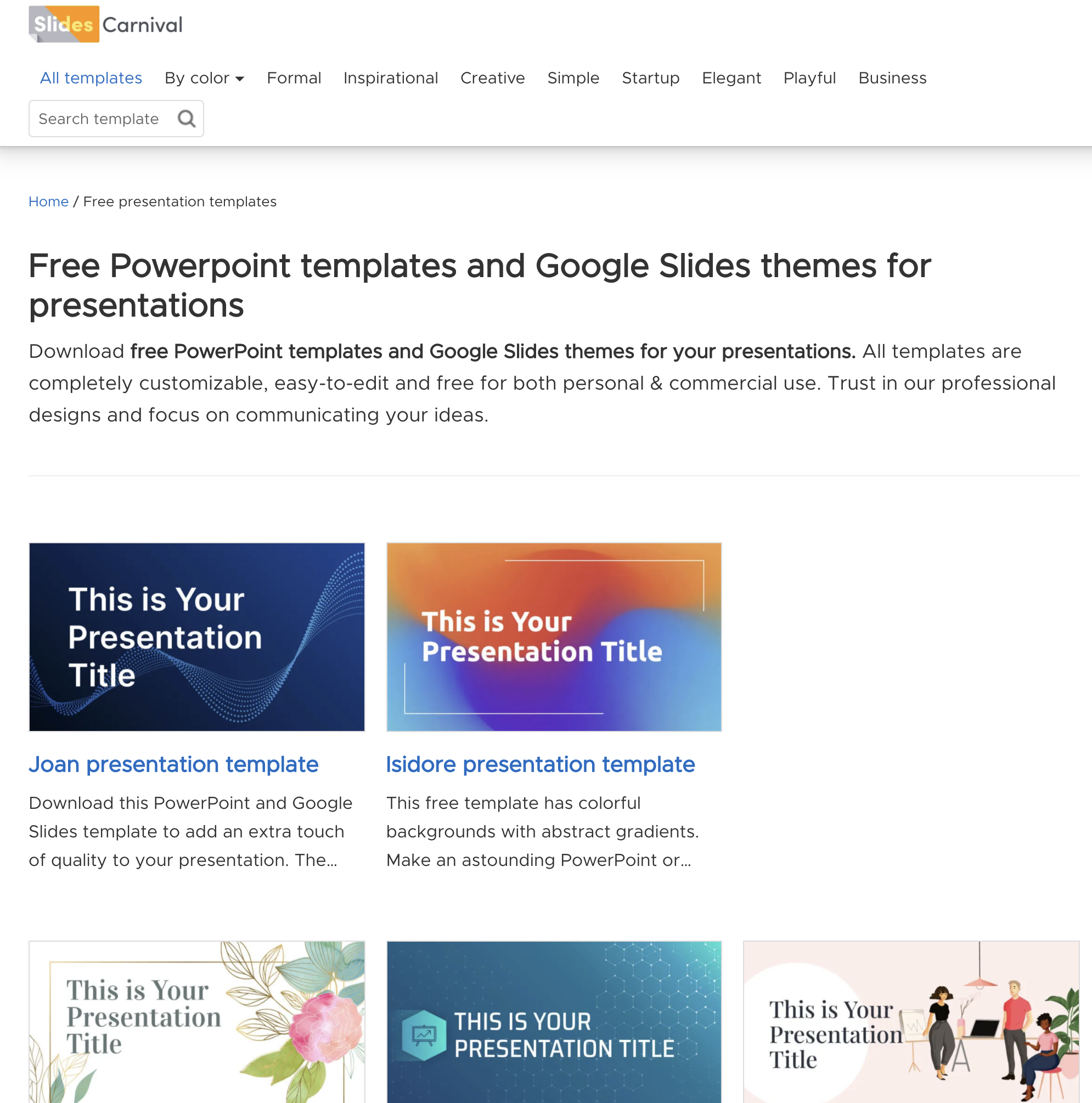 사이트 이름에서부터 나와 있듯 무료로 이용할 수 있는 ppt 템플릿 사이트입니다.