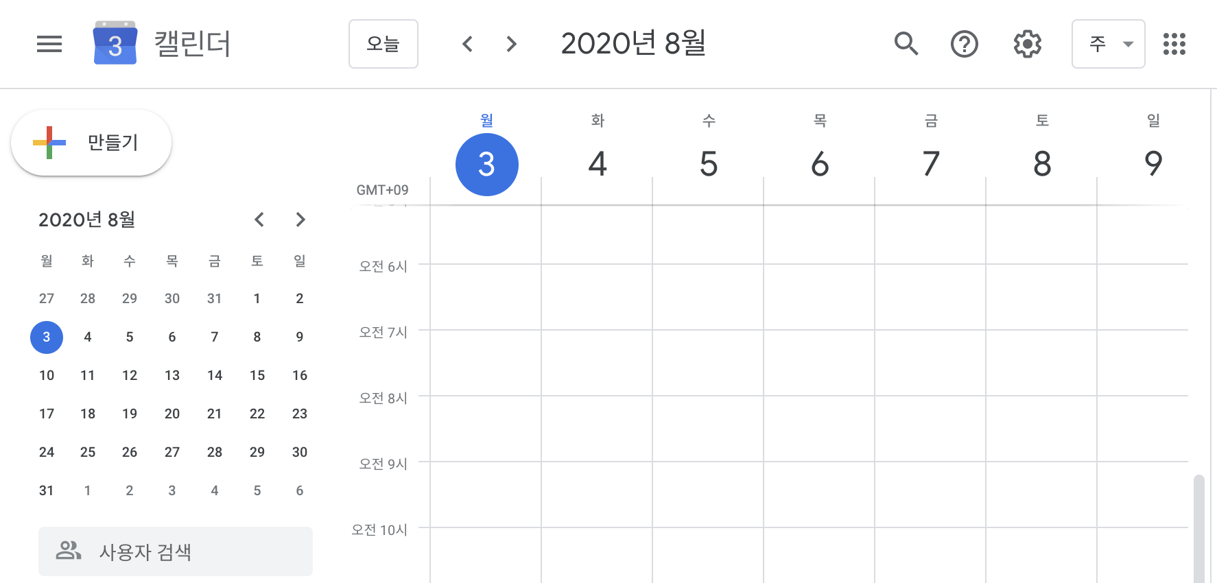 오른쪽에 크게 표시된 주별 달력이 있는데요.