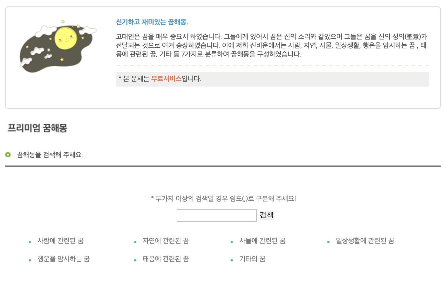 꿈해몽 하는데 디자인은 크게 상관 없으니 여기도 괜찮을 것 같습니다.