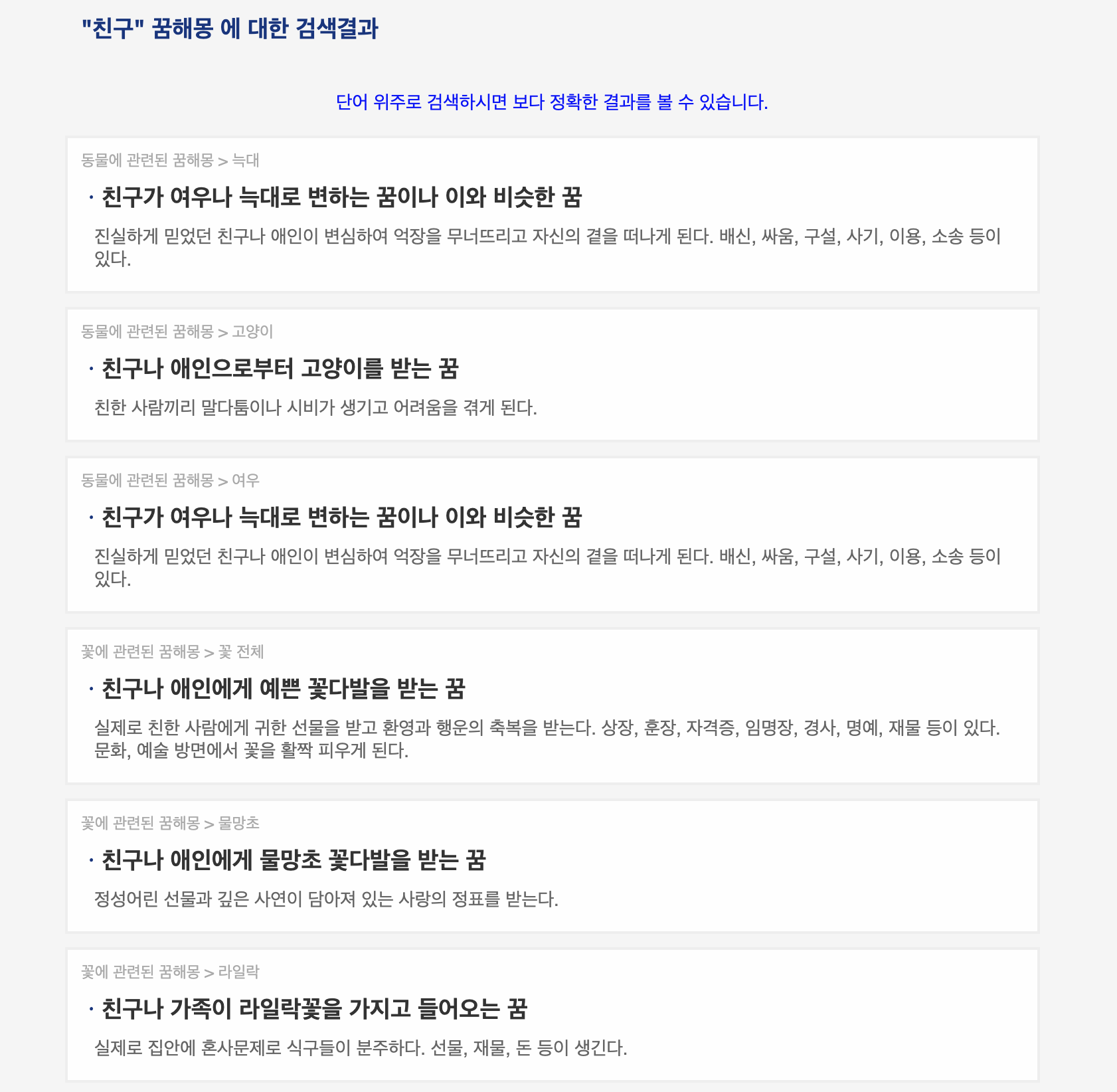 데이터도 굉장히 많기에 원하는 내용의 꿈해몽이 나올 것 같습니다.