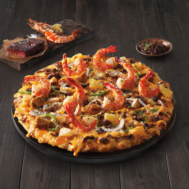 해산물 피자를 정말 사랑하시는 분이라면 여기에 케이준 새우살과 파인애플 2번, 올리브, 그리고 도미노 치즈를 한 번 추가해 주시면 진정한 씨푸드 피자가 무엇인지 느끼실 수 있을 거예요! 한 번 도전해 보시길~