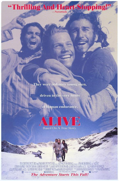 실화를 바탕으로 한 재난영화 얼라이브는 1970년 대에 있었던 항공기 추락 사고를 각색하여 제작되었다고 합니다.