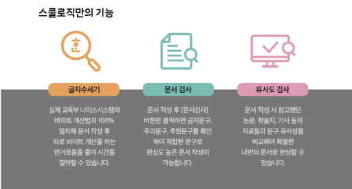 스쿨로직은 그 이름에서 알 수 있듯, 대입 고입 자기소개서 작성 시 표절검사에 많이 이용되는 사이트입니다.