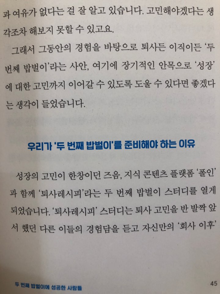 두 번째 밥벌이에 성공한 사람들의 이야기입니다.