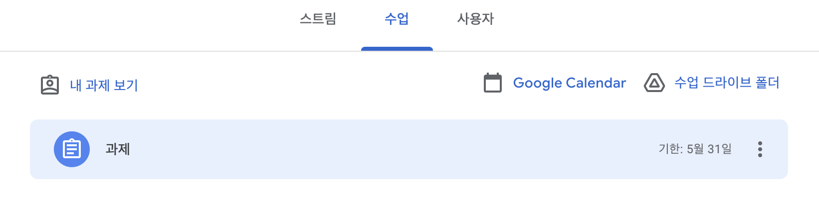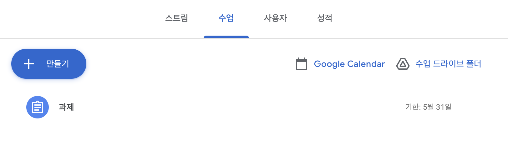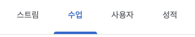 구글 클래스룸의 상단 탭 중 두번째에 있는 '수업'을 클릭합니다.