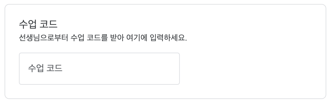 만약 선생님이 수업을 만드셨다면 '수업 코드'를 공유 해주셨을거예요.