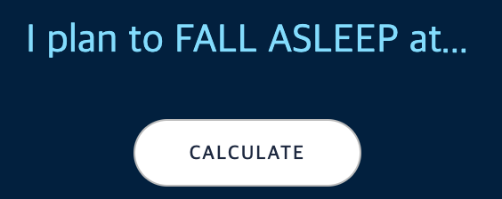 일어날 시간을 선택한 후 CALCULATE 버튼을 클릭하면 몇 시에 자야하는지 데이터가 나타납니다.