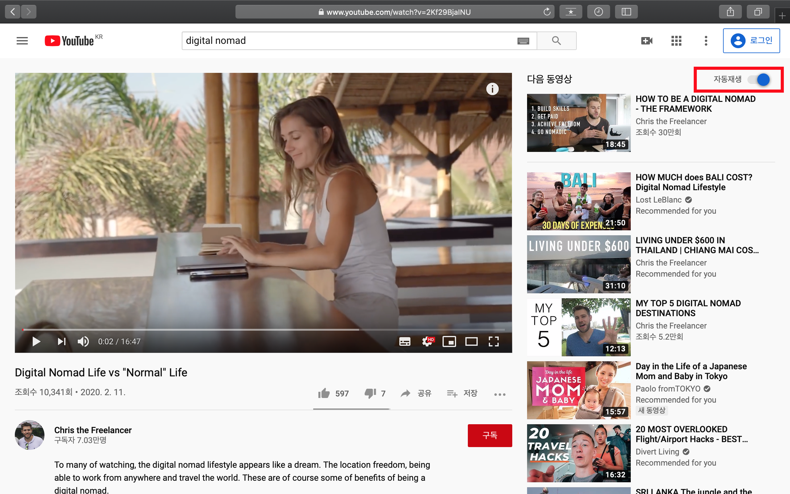 그리고 자동재생이란 한 영상이 끝난 후에 유튜브 알고리즘에 의해 다음 영상이 자동적으로 재생되는 것을 의미해요.